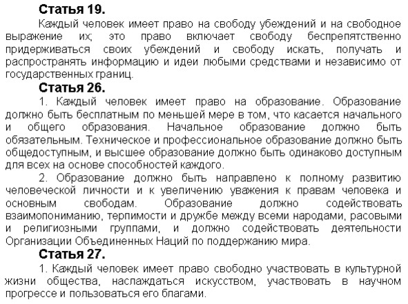 Согласно Декларации прав человека, люди имеют право получать информацию и получать образование. Торренты, как и библиотеки, предоставляют им эти возможности.