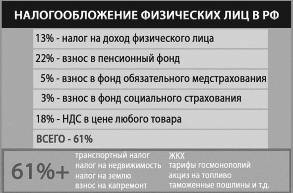 Важно понимать, что в каждом товаре спрятан налог на добавленную стоимость – НДС. Т.е. после получения зарплаты человек, совершая покупки, опять платит налог. Налог на право потратить честно заработанные деньги!