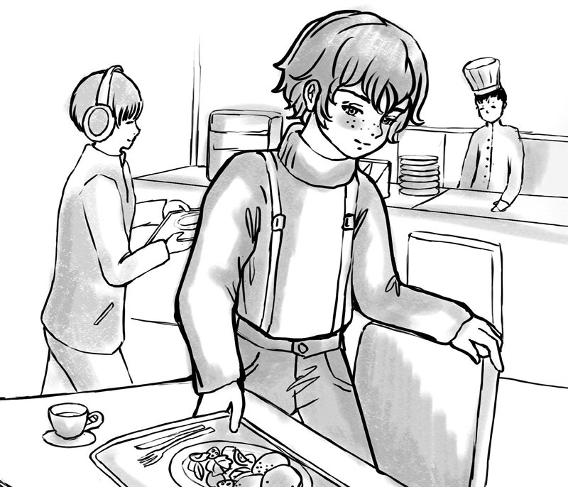 – Ты заметила, как злобно он на меня посмотрел? – громким шёпотом позже спросил Ферди, бухая поднос с едой на стол. Тарелки и вилки жалобно взвизгнули.