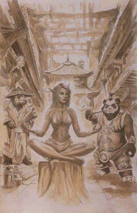 – «Пандаренов окружает множество тайн и легенд. Наша раса – загадка для всех. Мы не признаем полутонов для нас граница между добром и злом всегда ясна, поэтому мы верны Ледяной Королеве. Мы странствуем по империи, обучаем других, философствуем, становимся библиотекарями, обладателями тайных знаний и артефактов. Благодаря нашим знаниям в скором времени мы вернем свою королеву, и она возродит потерянный рай.