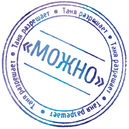 Жизнь полна таких возможностей и сюжетов, какие вам и не снились. Главное – выбрать себе именно такую жизнь! И как раз один из очень частых эффектов посещения моих тренингов и прочтения книг – это возникающее у человека понимание, что он уже взрослый и сам может стать волшебником своей жизни. Что ему – можно! Друзья даже подарили мне «волшебную» печать, на которой большими буквами написано «МОЖНО», а маленькими – «Таня разрешает!». И теперь очень часто меня просят поставить эту печать кому на руку, кому – в записную книжку или прямо на лист с формулировкой желания. Что я с удовольствием и делаю, потому что люблю играть в эту игру.
