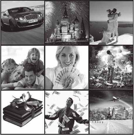 Представляйте, чего вы непременно хотите достичь в своей жизни и начинайте работать над своей картой желаний. В этом помогут яркие фотографии и картинки, изображающие самое смелое воплощение ваших заветных желаний. Вырежьте их из глянцевых модных журналов. Вставляйте и свои фотографии, отражающие радость и счастье. Найдите фото, где вы довольны собой, здоровы, в хорошем расположении духа, с хорошим настроением, после радостных событий, на праздничном салюте или карнавале (рис. 2).