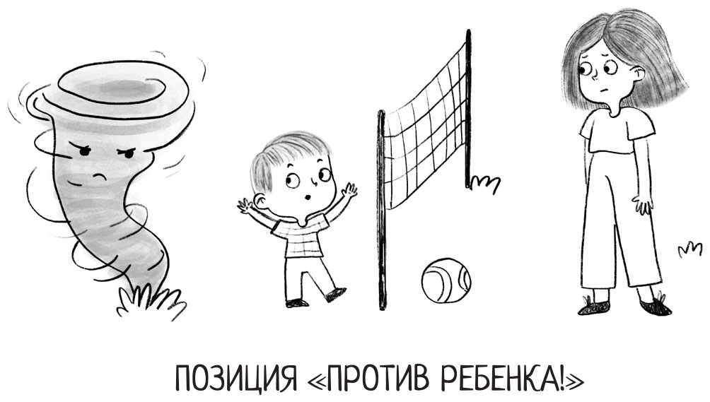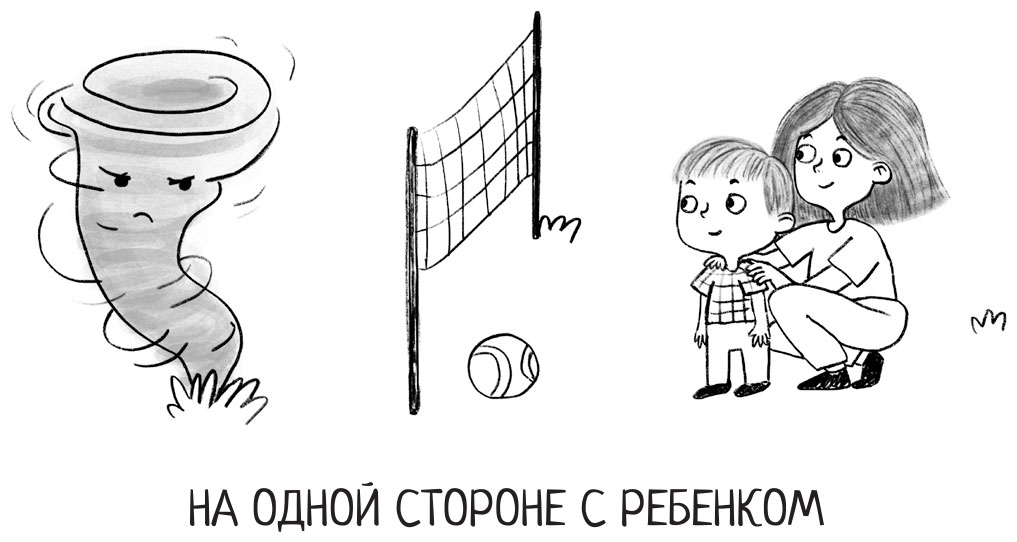 – Предлагаю вам изменить расположение сил в командах! – продолжила я. – Давайте переведем вашего сына в команду к вам, и вместе с ним вы будете играть против его плохого поведения. – Я стерла волейбольную сетку и нарисовала новую так, чтобы мама с сыном оказались в одной команде.