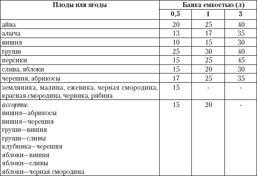Подготовленные для консервирования плоды варят 5 – 10 мин, затем укладывают в банки и добавляют пару ложек воды, банки стерилизуют на 5 мин дольше, чем обычные компоты из соответствующего вида сырья.
