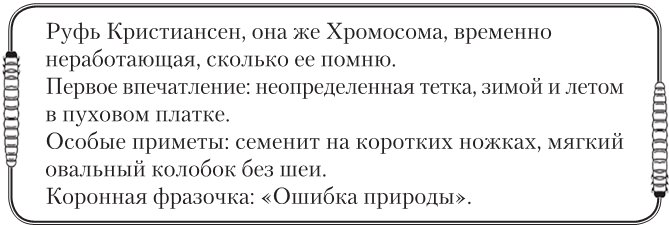 Руфь – мамина лучшая и единственная подруга. Вот только, хоть убей, не пойму, как они сошлись – такие они разные. Мама у меня всегда, еще до болезни, была худая, даже угловатая. Она высокая, с порывистыми резкими движениями, звонким голосом и яркой улыбкой, озаряющей лицо, как выглянувшее из-за облаков солнце. Руфь же серенькая, маленькая, пухленькая и мягкая до бесформенности, не идет, а перекатывается, а на лице – вечно похоронное выражение, будто у нее то ли кто-то умер, то ли вот-вот скончается. Она вроде родилась без одной хромосомы или что-то в этом роде и теперь считает, что весь мир ей за это должен.