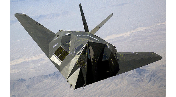 Американский малозаметный ударный самолет F-117 «Найт Хок» (Lockheed F-117 Night Hawk). Фронтальная ЭПР 0,02—0,1 кв. м. Взлетная масса 22 тонны, боевая нагрузка 2,2 т. Крейсерская скорость 900 км. ч, боевой радиус 860 км., практический потолок 14 км. Успешно применялся в войне с Ираком и Югославией. С 1983 по 1990 годы произведено 64 единицы, стоимость «Ночного ястреба» 111 млн. долларов. Боевые потери за всю историю эксплуатации – одна машина. С 1997 года заменяется многофункциональным истребителем пятого поколения F-22.