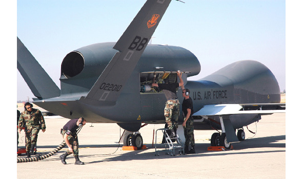 Стратегический разведчик Northrop Grumman RQ-4 Global Hawk (примерно как «Всемирный Сокол»). Способен патрулировать воздушное пространство в течении 36 часов, на высоте до 18 км, сопровождать цели, наводить ракеты, и пр. Связь с центром управления, который может располагаться в любой точке планеты – обычно через спутник, по хорошо защищенному каналу (50 Мбит. с.). Масса – 15 000 кг., полезная нагрузка 900 кг., крейсерская скорость 650 км. ч. «Сокол» активно используется и в научных, гражданских целях. С 1998 по 2004 годы произведено около сорока аппаратов. Стоимость единицы около 140 млн. долл. (включая НИОКР) что связано с некоторым сокращением их производства. В планах ВВС США – создание атомного, возможно, радиоизотопного двигателя для многомесячной автономной работы данного БПЛА.