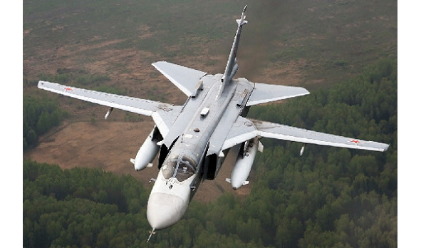 Су-24, по кодификации НАТО Fencer – «Фехтовальщик», советский, российский фронтовой бомбардировщик с крылом изменяемой геометрии. Экипаж 2 человека. Взлетная масса 33500 кг, боевая нагрузка 7500 кг., вооружение – шестиствольная 23 мм. пушка с 500 снарядами, ракеты воздух-воздух, воздух-земля, бомбы свободнопадающие и корректируемые. Максимальная скорость 1600 км. ч., боевой радиус 560 км., практический потолок 11500 м. С 1971 по 1993 годы произведено 1400 единиц. Согласно данным российских СМИ, самолет неплохо показывает себя в сражениях с сирийскими боевиками, не располагающими какими-либо средствами ПВО. Судя же по тому, что одна из этих машин была сбита турецким истребителем F-16 в боевой обстановке «неожиданно» и «предательски», можно судить о том, что Су-24 не располагает системой предупреждения о приближении чужих самолетов, попадании в прицел радара, пуске ракет «воздух-воздух» – либо же летчики не обладают достаточной квалификацией для пользования этими устройствами.