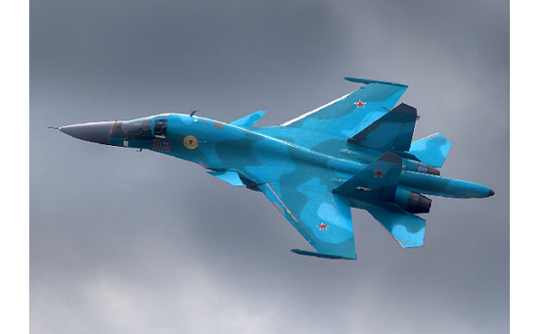 Су-34, по кодификации НАТО Fullback – «Защитник», российский (разработка СССР) мнофункциональный истребитель-бомбардировщик категории 4++. Экипаж два человека, масса взлетная 39 000 кг., боевая нагрузка 8 000 – 12 000 кг. (в зависимости от дальности полета). Скорость – до 1900 км. ч., боевой радиус 1 100 км., практический потолок 17 000 м. Собственное вооружение – 30 мм. пушка, ракеты «воздух-воздух», по некоторым сообщениям, с возможностью пуска в заднюю полусферу. Система радиоэлектронной борьбы (РЭБ) – отечественная концепция «невидимости» для радаров противника; в случае необходимости пилоты агрессивно применяют комплекс «Хибины» (изделие Л-175В). Су-34 или «Утенок» (прозвище, данное за приплюснутый передний обтекатель) использует систему СВП-24 «Гефест», позволяющую использовать свободнопадающие бомбы почти с той же точностью, что и корректируемые. Машина обладает необычным для отечественного военного авиапрома комфортом – системой кондиционирования, биотуалетом, откидными креслами, внушительным внутренним пространством и, по ряду признаков может именоваться «воздушным судном». Первый полет Су-34– 1990 г., с 2008 года произведено более 100 единиц. Стоимость – от 40 до 60 млн. долларов в зависимости от комплектации. При всех несомненных достоинствах Су-34, не вполне понятно, какие преимущества этот самолет имеет перед современными боевыми БПЛА.