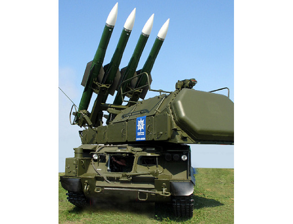 «Бук», по кодификации НАТО SA-11 Gadfly (Овод), советский, российский самоходный зенитно-ракетный комплекс. Зона поражения по дальности от 3 до 45 км., на высоте от 15 м. до 25 км., (среднее значение) при максимальной скорости поражаемых целей до 1100 км. ч., при ЭПР уровня 0,05 кв. м. Экспортные версии – «Штиль», «Ганг»; комплекс состоит на вооружении восьми стран «дальнего зарубежья», и 300 установок перешли к образовавшимся после распада СССР «ближним» государствам. Стоимость единицы – 250 000 долларов.