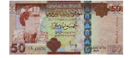 Пятьдесят динаров времен Муаммара Каддафи.