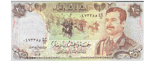 Десять иракских динаров периода правления Саддама Хусейна. Строго говоря, страны, чьи валюты представлены здесь, уже практически не существуют.