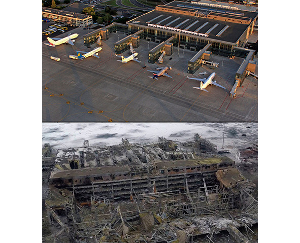 Аэропорт Донецка до и после проведения «Антитеррористической Операции (АТО)».