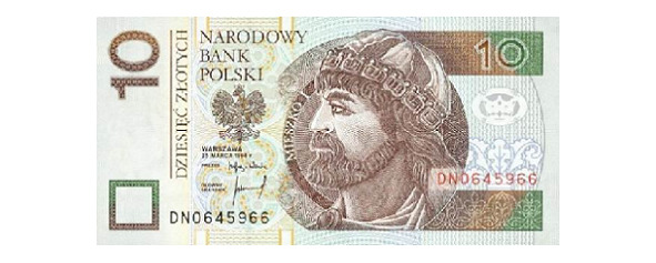 4. Польский злотый. Состоит из ста грошей. Изображение князя Мешко Первого, основателя древнепольского государства. В настоящее время страна не обеспечивает условия, необходимые для перехода на евро, потому до сих пор пользуется национальной валютой. Курс злотого к рублю – 1:15, доллару США 1:0,25. Средняя зарплата 3500 злотых (52 500 рублей).