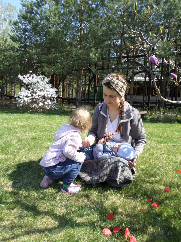 Когда мне надоело гнездоваться и захотелось вернуться в социум, нас выручил слинг. Я просто приматывала Лесану к себе и шла куда угодно. На ютюбе множество замечательных видео чудесной киевской мамы Нины Зайченко, по ним я и научилась мотать слинг. Еще во время беременности я купила слинг с кольцами, потом слинг-шарф, а ближе к году – хипсит и эрго-рюкзак. Чаще всего Лесана в слинге была очень спокойной, спала или наблюдала за происходящим вокруг. И мне очень нравилось это теплое ощущение близости. Когда все идет как надо, нет тревоги, нет беспокойства, только ощущение правильности происходящего. Я была абсолютно счастлива в своем материнстве, оно давалось мне легко и беззаботно благодаря всем этим принципам. И я видела, что Лесана счастлива. Жаль, что моя затянувшаяся почти на целый год скорбь по прошлой жизни, по бабушке, тоска по родным лишили меня многих счастливых моментов с моими детьми. Потому что голова все время была забита не тем: мыслями о том, как выживать дальше. Не было чувства защищенности, чувства гнезда. Но сейчас, когда все проблемы решены и осталось только немножко подождать, я, наконец, вышла из состояния депрессии и жадно ловлю каждую секунду моей новой, не менее прекрасной, чем до обыска, жизни.