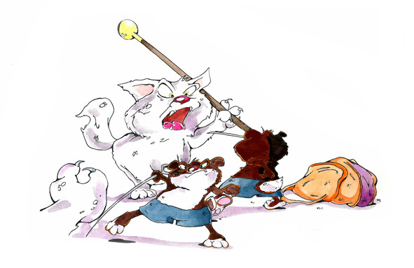Пипито сделал выпад. Кувырок. Прыжок. Удар. Укол. Вот это реакция! Паулина растерялась, Пипито нападал то с одной стороны, то с другой. Кошка попятилась, дверцы шкафа предупредительно оказались открыты. Паулина спиной отступила туда. Вот она победа! Мышеловка, стоящая в шкафу прищемила кошке хвост. Паулина взвизгнула и бросилась вон из комнаты.