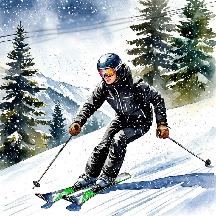 А там по снежному покрову прямо между деревьями быстро двигался человек. Казалось, он летел над снегом, катился красиво, плавно и как-то даже грациозно. Сначала я решила, что это такой неизвестный мне способ левитации, но потом рассмотрела на его ногах две ярко-зелёные длинные доски, а в руках две тонкие палки. Иногда он отталкивался ими от снега, но большую часть времени просто держал их в руках.