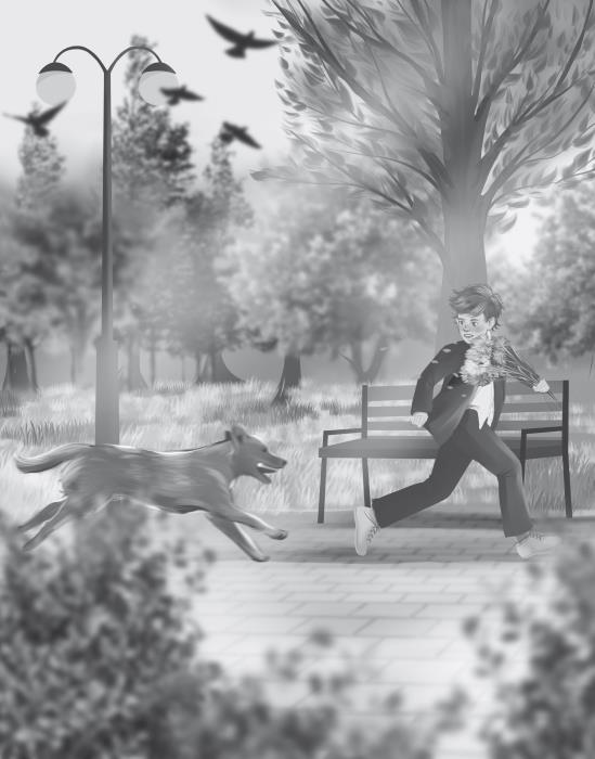 Ух, как я шпарил! Через лавки, через кусты, чуть не свалился в открытый люк! Ветер колотил в спину, и я крутил коленями на максималке. Собака неслась за мной с пронзительным лаем, преследовала, хотя мы её не трогали и не дразнили. Как назло, магазины ещё не открылись, и я мчался в единственное безопасное место – в школу. Букет я крепко сжимал в руке – зря, что ли, на клумбе корячился.