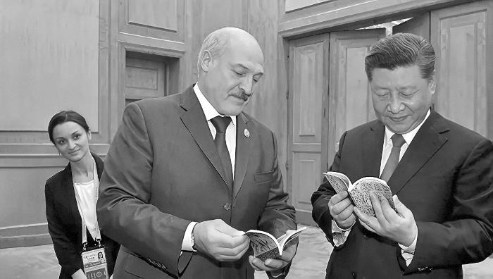 Лукашенко вручает Си Цзиньпину личный подарок. 2019