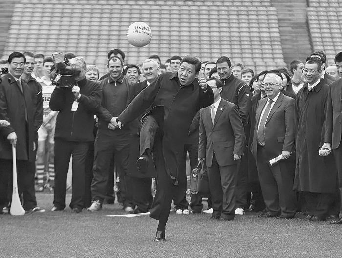 Си Цзиньпин демонстрирует свои навыки игры в футбол. 2013