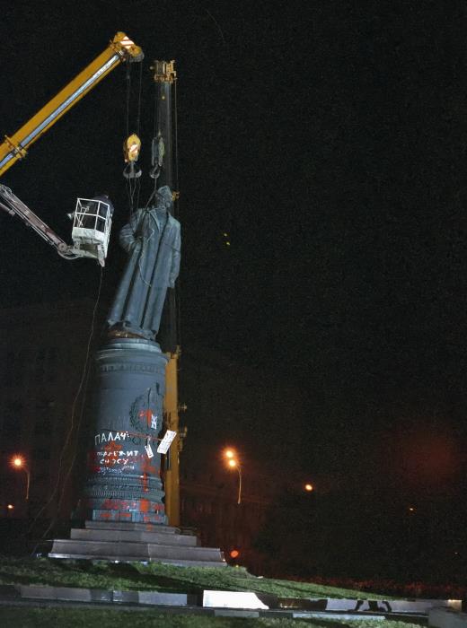 Демонтаж памятника Ф.Э. Дзержинскому на одноименной площади в Москве.