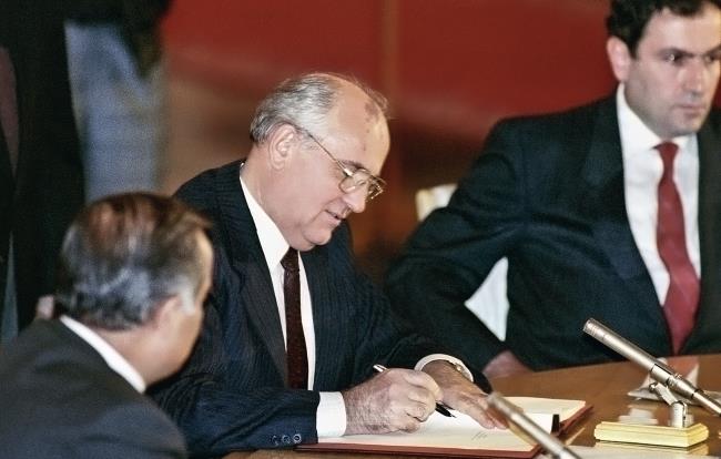 Подписание Договора об Экономическом сообществе между президентом СССР М.С. Горбачевым и главами Армении, Беларуси, Казахской ССР, Кыргызстана, РСФСР, Туркменской ССР и Узбекистана. Кремль. 18 октября 1991