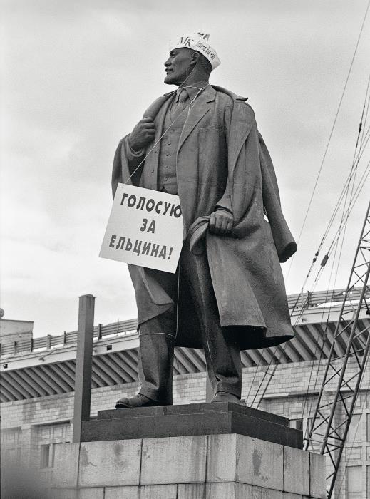 Агитационное оформление памятника Владимиру Ленину в поддержку кандидата на пост президента России Бориса Ельцина в рамках второго тура выборов, назначенного на 3 июля. 30 июня 1996