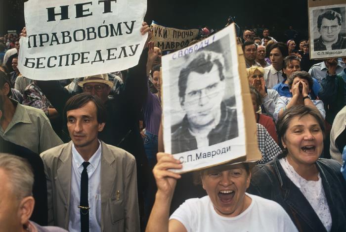 Несанкционированный митинг вкладчиков МММ на Петровке, 38, у здания Главного управления МВД России по г. Москве. 1994