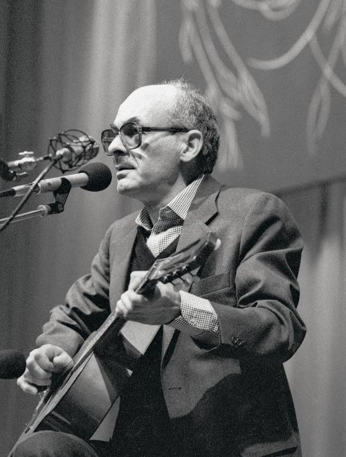 Булат Окуджава выступает на вечере писателей и поэтов – авторов молодежного журнала «Юность». 1983