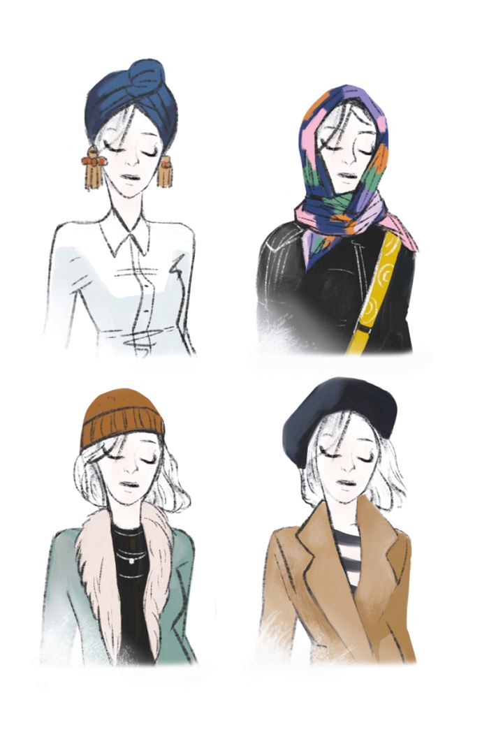 Можно пользоваться двумя принципами, вписывая головной убор в образ: общей сочетаемости и противопоставления.