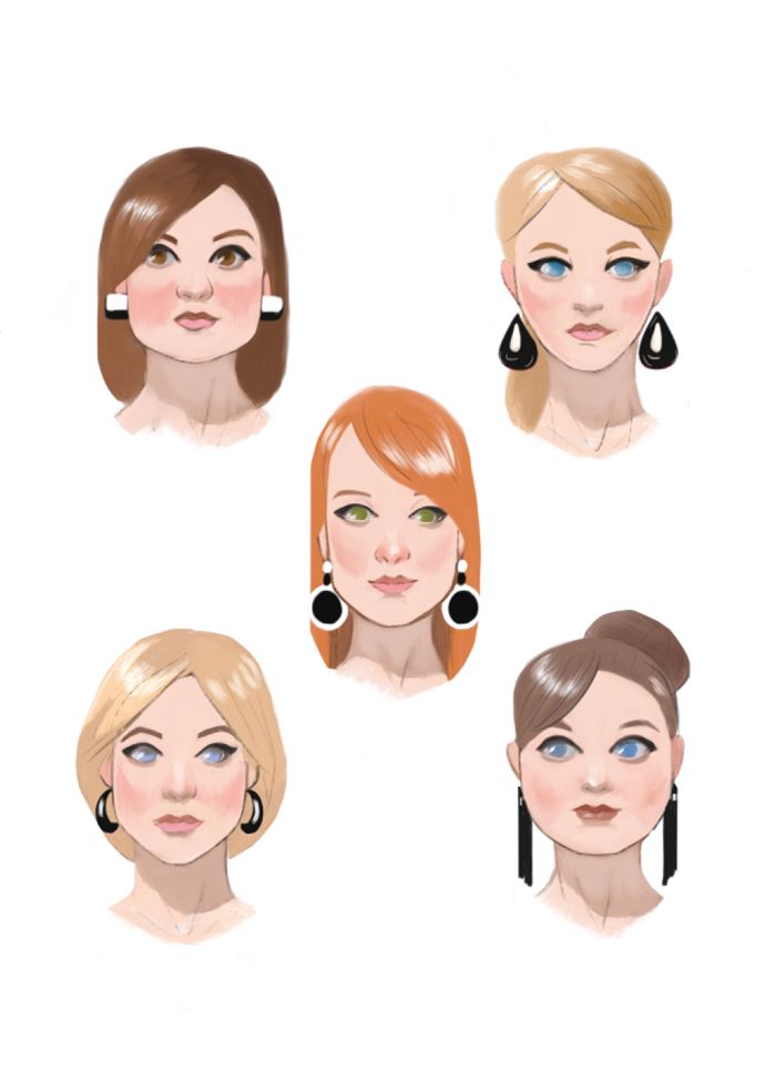 Треугольное лицо с резкими скулами, острой линией челюсти и узким подбородком буквально создано для крупных и разнообразных сережек, так же как и лицо-«сердце». Разве что огромные клипсы вполовину уха могут быть лишними, хотя это вопрос индивидуальный.