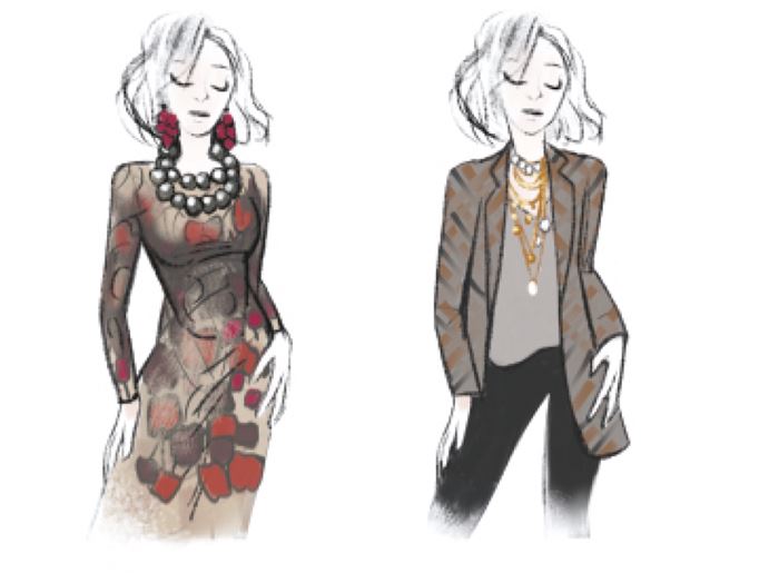 Украшение на шее может эффектно дополнить образ, а может его уничтожить. Всегда есть опасность скатиться в перебор, плохую «цыганщину» (бывает и хорошая, если она продумана и концептуально оправданна) или стиль «наряжалась старательно, ну очень старательно». Знаете, это ужасно, когда смотришь на даму и видно, как она старалась нарядиться, как пульсировали вены в виске, как она судорожно перебирала свою шкатулку сокровищ, неуверенно поднося к лицу то одно, то другое. «Старательность» – враг стиля, друг его – игра и легкость. Я в целом ненавижу это слово – «старательный». В начальной школе на полях учительница иногда писала «недостаточно старательно» или «не старается». Что это за формулировка такая? Но я упорно изображал «старательность», чтобы угодить классной даме. Но толку-то? Это лирическое отступление к тому, что «старательный» образ – почти всегда плохо.