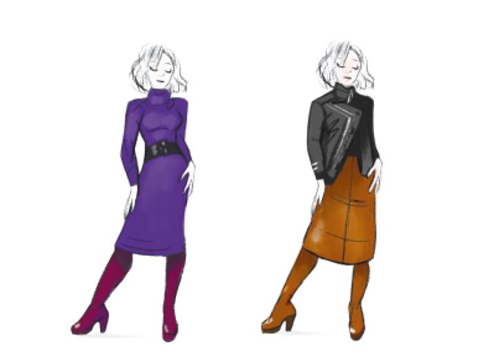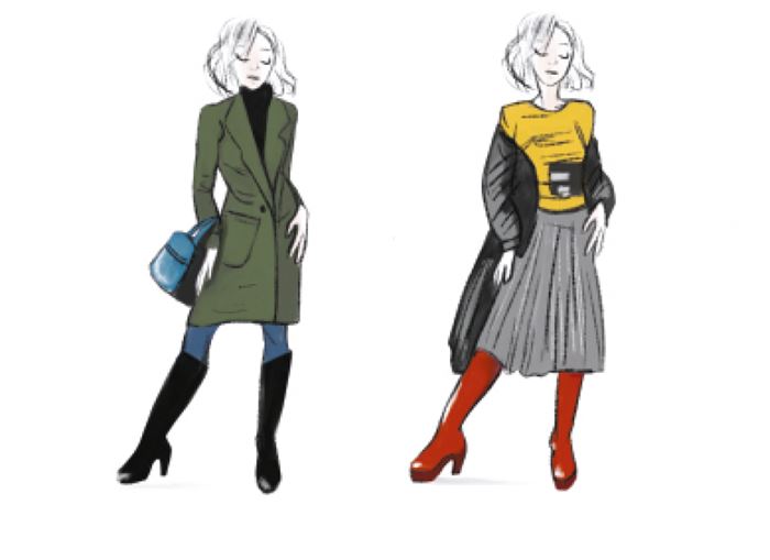 Если душа все же требует короткой юбки (зимой? Ну ок, бывает, у всех свои заморочки) и сапоги должны присутствовать в образе непременно, то наденьте хотя бы серые плотные колготки, тепленькие такие, – и ноги не застудите, и внешний вид спасете. Серые колготки при темных сапогах и юбке создадут градацию цвета и сделают границы вещей менее жесткими.