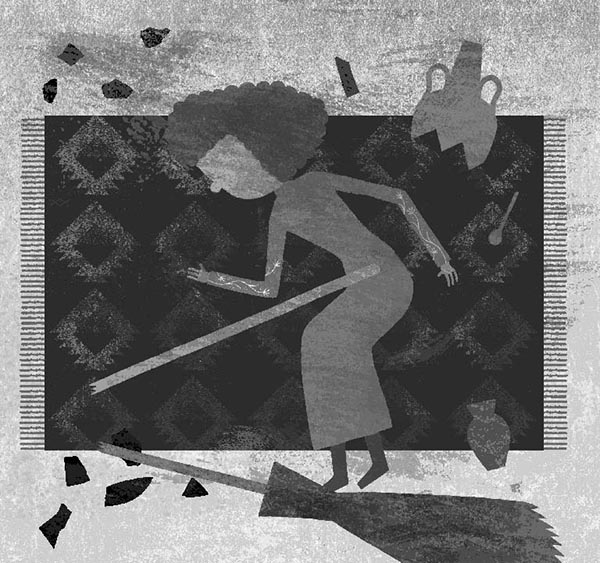 Я перевожу взгляд на сломанную пополам метлу. Ручка у неё из тёмного дерева, отшлифованная временем, явно старинная, ей, наверное, несколько сотен лет. Такую вполне можно было бы отыскать в кладовке у тёти Геры. Я смотрю на разбитый кувшин на полу, выглядываю в столовую, в дальнем конце которой распахнута дверь на террасу. Видимо, девочка влетела как раз через неё, пронеслась над отполированным обеденным столом в заднюю комнату и уже здесь сломала метлу.