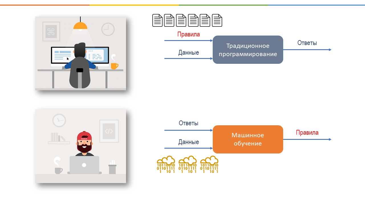 Машинное обучение появилось после того, как долгое время мы пытались сделать компьютер умнее, давая ему все больше и больше правил и инструкций. Однако, это оказалось не такой уж и хорошей идеей, потому что отнимало много времени, и мы не могли придумать правила для каждой детали и для каждой ситуации.