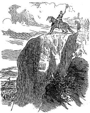 Убедившись в том, что приготовления окончены, зрители отхлынули на плоскогорье. Сиболеро, верхом на своем черном мустанге, остался один на обрывавшейся в пропасть скале.