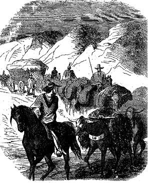 Торговцы перевозят свои товары или на мулах, или в повозках, запряженных волами. Эти повозки могут служить великолепной иллюстрацией первобытного способа передвижения. Колеса из бавольника, соединенные крепкой деревянной осью, по форме скорее приближаются к эллипсу или четырехугольнику, чем к кругу. На оси стоит глубокий квадратный ящик. Волы впрягаются посредством деревянной поперечины, привязанной к их рогам обыкновенными ремнями. Об упряжи и ярме мексиканцы не имеют понятия.