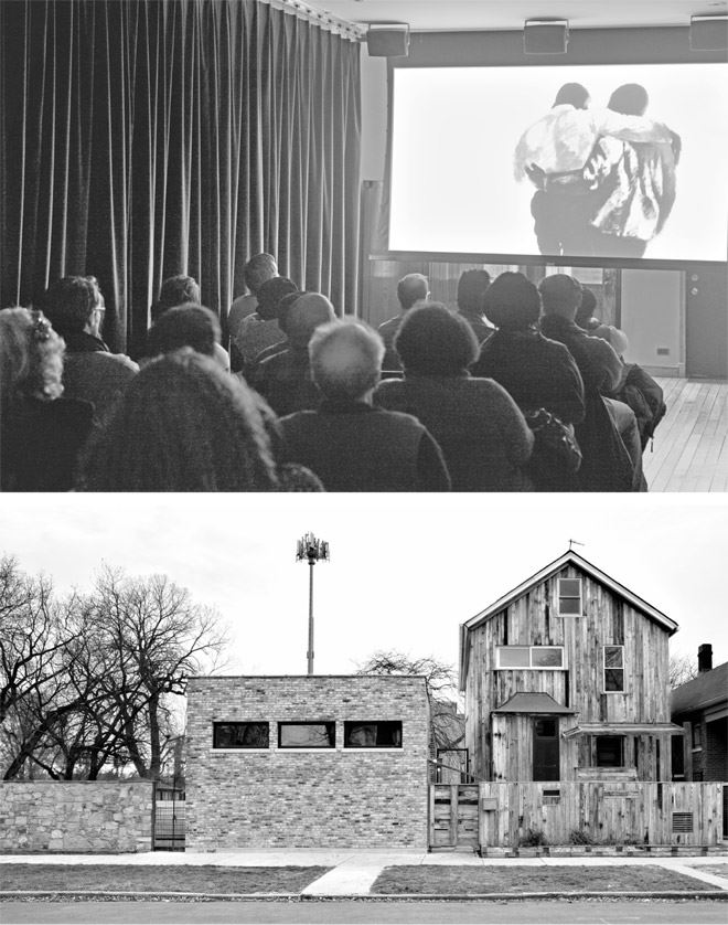 Наконец, заброшенное здание под номером 6901, в котором – на втором этаже – поселился сам Тистер. Первый этаж отдан под зал собраний, где местные жители смотрят и учатся снимать кино. Здание тоже не осталось безымянным. Теперь оно известно как Дом черного кино и третий по счету центр, входящий в комплекс афроамериканской культуры под общим названием «Дорчестерские проекты». Тистер называет свой метод реновации «перевариванием», в результате которого возрождаются полуразрушенные постройки, причем делается это на деньги, вырученные от продажи всякого мусора богатым собирателям предметов искусства.