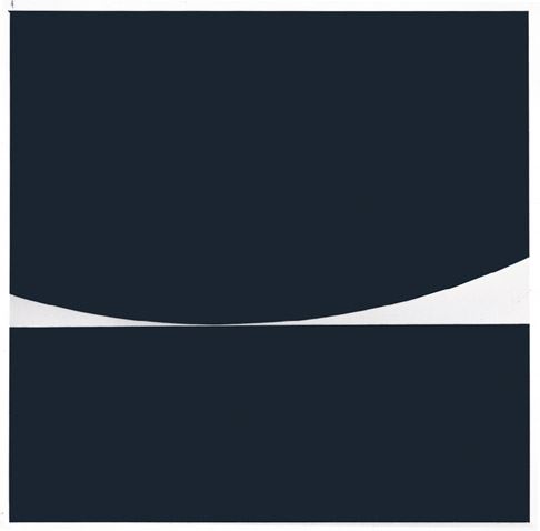 Сезанн настаивал на необходимости связной композиции, Сёра развивал теорию о четких границах цвета, Ван Гог был приверженцем резких контрастов. Бриджет Райли умела добиваться похожих эффектов, но никогда не использовала их в абстрактной живописи. Она вернулась к покрытому черной краской холсту, но на сей раз добавила новую деталь: на треть выше нижней кромки полотна провела горизонтальную белую полосу. Нижняя граница полосы была безупречно ровной, будто вычерченной по линейке, а вот сверху художница поместила асимметричную волнистую линию, заметно расширяющуюся от центра к краям. Получились три отдельные, контрастирующие одна с другой формы, уравновешенные композицией. Этим простым, но эффективным способом автор показывает нам изменчивую, динамичную природу трех видов отношений: пространства, формы и людей друг с другом. Их напряженное взаимодействие находит отражение в названии картины – «Поцелуй» (1961).