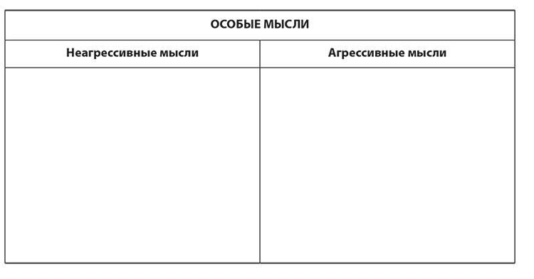 Используйте приведенную ниже таблицу для записи неагрессивных и агрессивных мыслей.