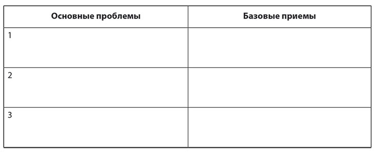 Запишите три приоритетные проблемы, которые заслуживают вашего внимания, и базовые приемы, которые могут вам помочь.