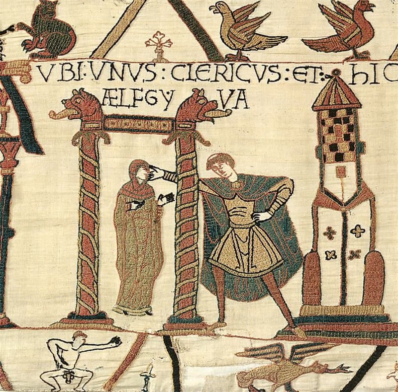 [15] Эльфгива и клирик. Гобелен из Байё. Ок. 1086