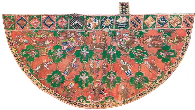 В Англии возросший спрос за рубежом на церковную вышивку, известную как Opus Anglicanum, привел к переходу от домашнего рукоделия, которым занимались в основном женщины во всей стране, к строго организованным, управляемым мужчинами цеховым мастерским в Лондоне. Церковные ризы Syon Cope, образец такой вышивки, представляют собой высокое средневековое искусство конца XIII – начала XIV века, по своему статусу приравненное к живописи и скульптуре. Opus Anglicanum, сложная и удивительно выразительная вышивка шелковыми, золотыми и серебряными нитями с добавлением жемчуга, драгоценных камней и чеканного золота на льняной или бархатной основе превращала эти материалы в струящиеся светом сцены повседневной жизни и библейские события. По мере того как спрос на Opus Anglicanum ширился по всей Европе, в письмах папы Иннокентия IV к аббатам Англии всё настойчивей звучали просьбы прислать побольше этого шитья. Роскошно украшенные облачения Opus Anglicanum отождествляли богатство земной власти, которую символизировали драгоценные материалы и высокое мастерство, с божественным руководством, а движение тела под ризой превращало ее поверхность в трансцендентное сияние. С середины XIII века женщины, похоже, исчезают из профессионального производства, современные же объяснения рукоделия как исключительно женского ремесла, большей частью игнорирует способы его производства.