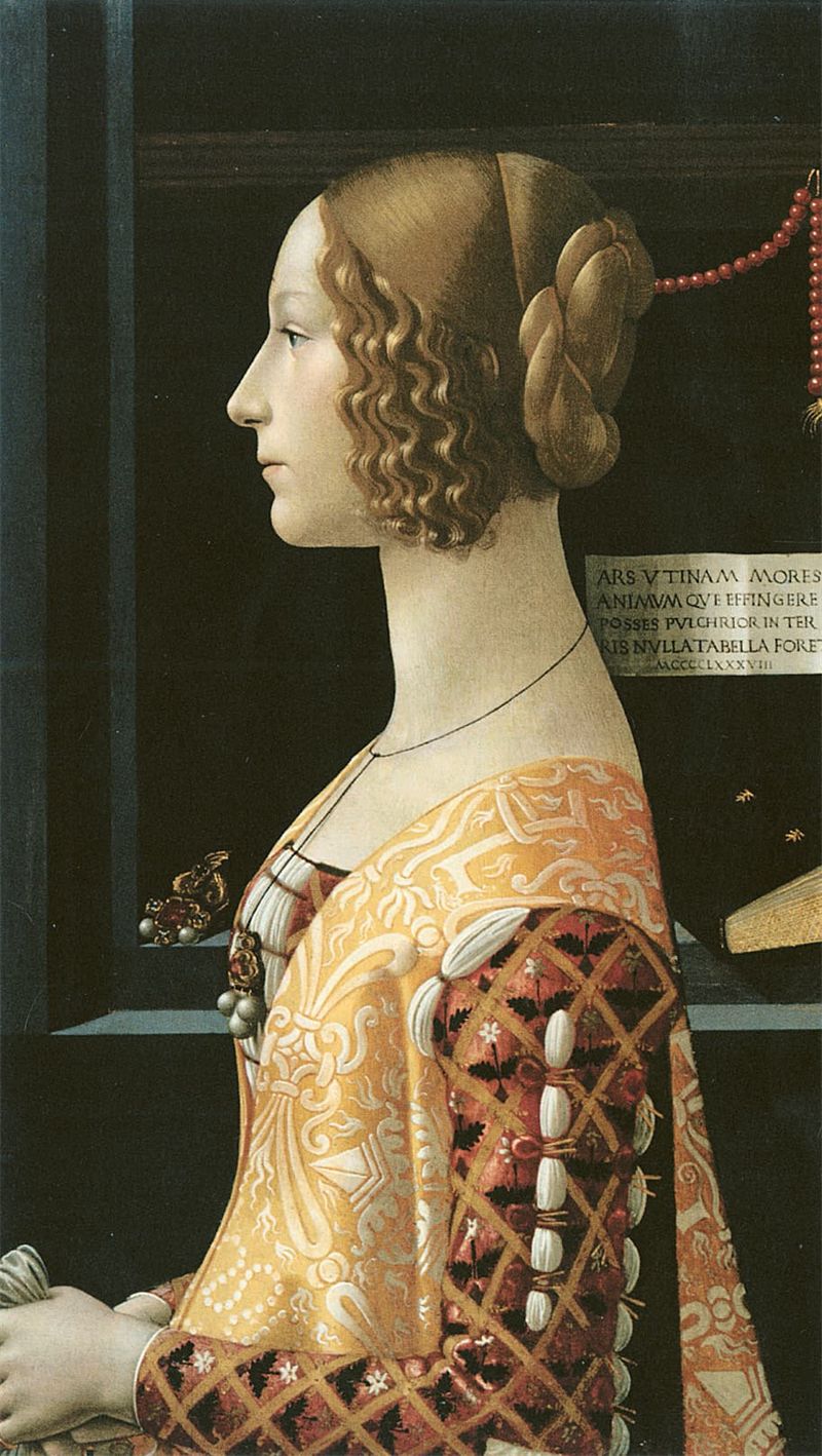 В искусстве Флоренции XV века, несмотря на то что оно большей частью оставалось религиозным по содержанию и клиентуре, произошел переход от изображения светских фигур как простого дополнения к религиозным сценам к индивидуальному портрету. Появление в середине века профильного портрета объединило сюжет и заказчика в образах, которые подчеркивали общественное положение, индивидуальность, богатство и социальный статус, а также переключило внимание на женский костюм, манеры и украшения.