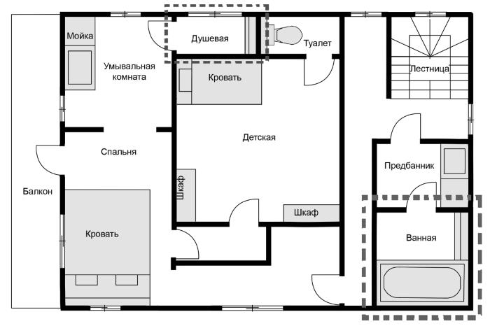 Курихара: К тому же в этой комнате есть еще одна непонятная деталь. Посмотри на туалет. Судя по расположению двери, в него можно попасть только из детской.