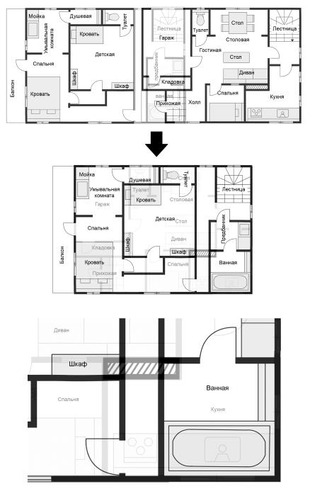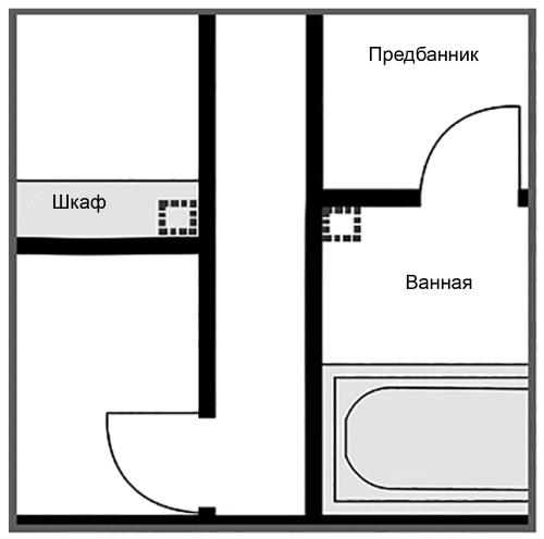 Курихара: Но, честно говоря, в ней меня тоже кое-что смущает. В верхней части плана изображена душевая. Получается, умывальная комната играет роль предбанника[1]1