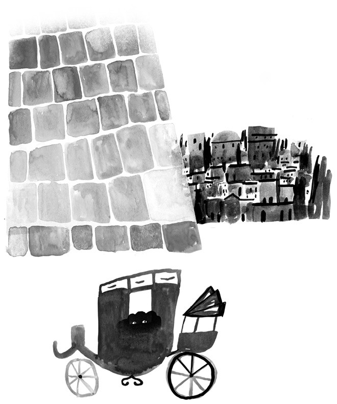 Я показал Зверю из темноты наш квартал и объяснил, что это – первый еврейский квартал за стенами Старого города. И что наш дом – очень древний, ему, может быть, сто лет. Из-за того, что он такой старый, у него ужасно толстые стены. Я показал Зверю мельницу с крыльями, которые не вертятся, потому что она уже давно не мелет муку. Показал и карету Монтефиоре, потому что, когда Монтефиоре приезжал в страну, чтобы помогать евреям, машин ещё не было. Были только паровозы и пароходы. Ещё я объяснил Зверю, что в кареты впрягают коня или пару коней. Короли впрягают в свои кареты помногу коней за раз, пару за парой.