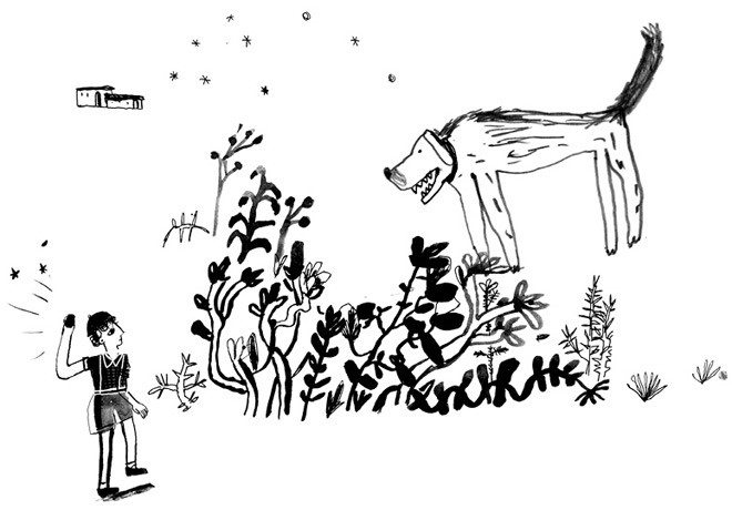 Когда я дошёл до одинокого дома, приплёлся жёлтый пёс и начал на меня лаять. Всегда, когда я иду короткой дорогой, гадаю, будет он там или нет. Если я прохожу это место, а пёс так и не появился, то вздыхаю с облегчением. Я боюсь этого пса. Вообще боюсь собак.