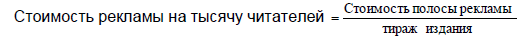 Следует определить затраты на размещение рекламы в различных изданиях. Для этого традиционно используется показатель стоимости рекламы в расчете на тысячу читателей: