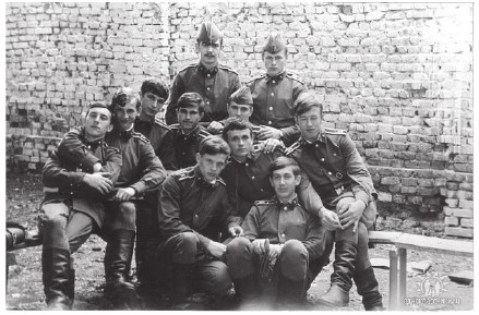 На левом фото: С. Клёнин, В. Силуянов с преподавателями кафедры передающих устройств, рядом со мной стоит участник боевых действий во Вьетнаме, майор Б. Ф. Каргин